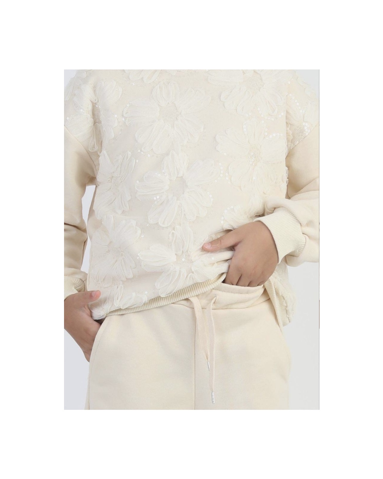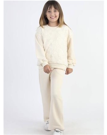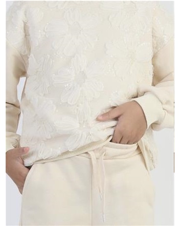 Krem Tül işlemeli takım{5\12 YAŞ ARASI}
